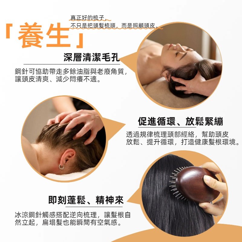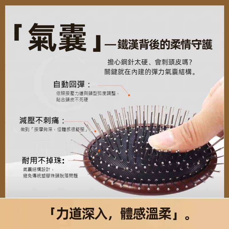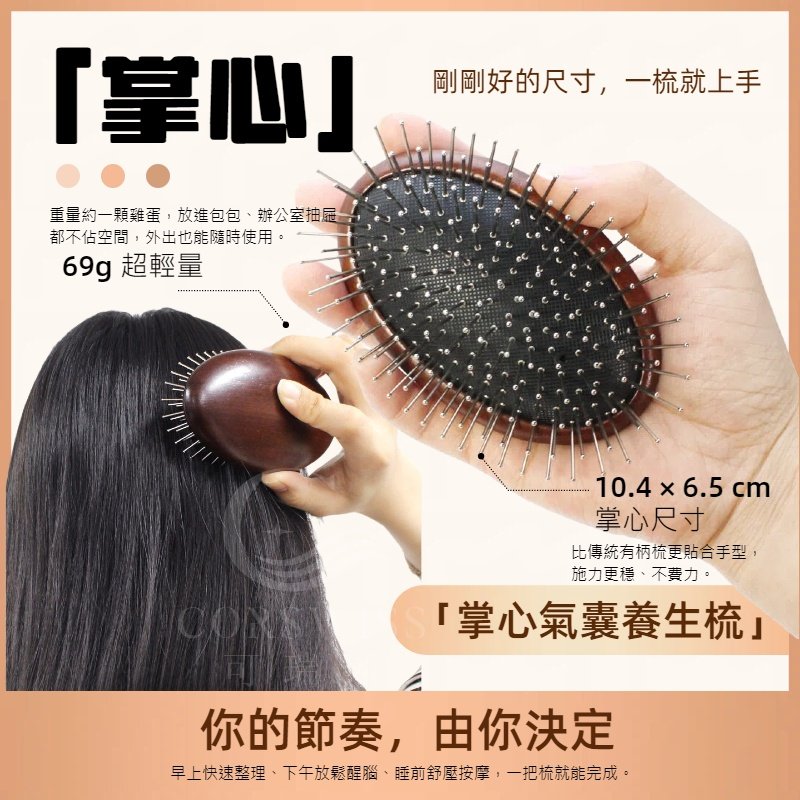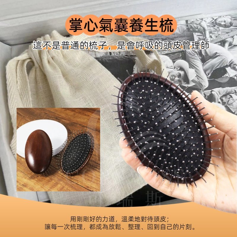 掌心氣囊養生梳|鋼針深層按摩不刺痛,69g迷你檀木梳,油頭扁塌急救,隨身頭皮SPA