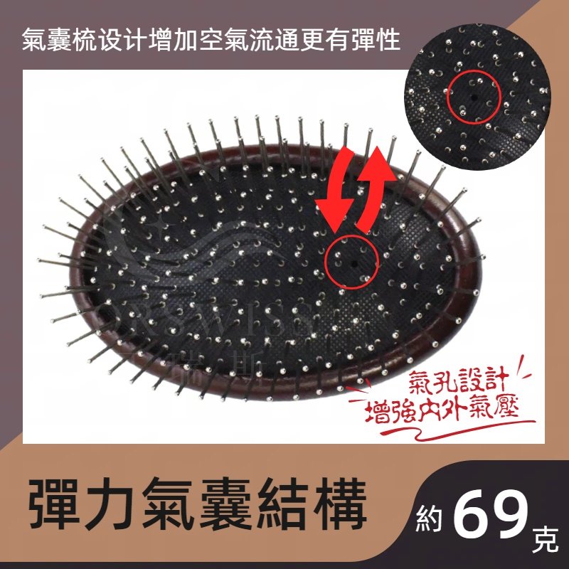材質:304不銹鋼針齒 + 紅檀木背板 + 彈力氣囊