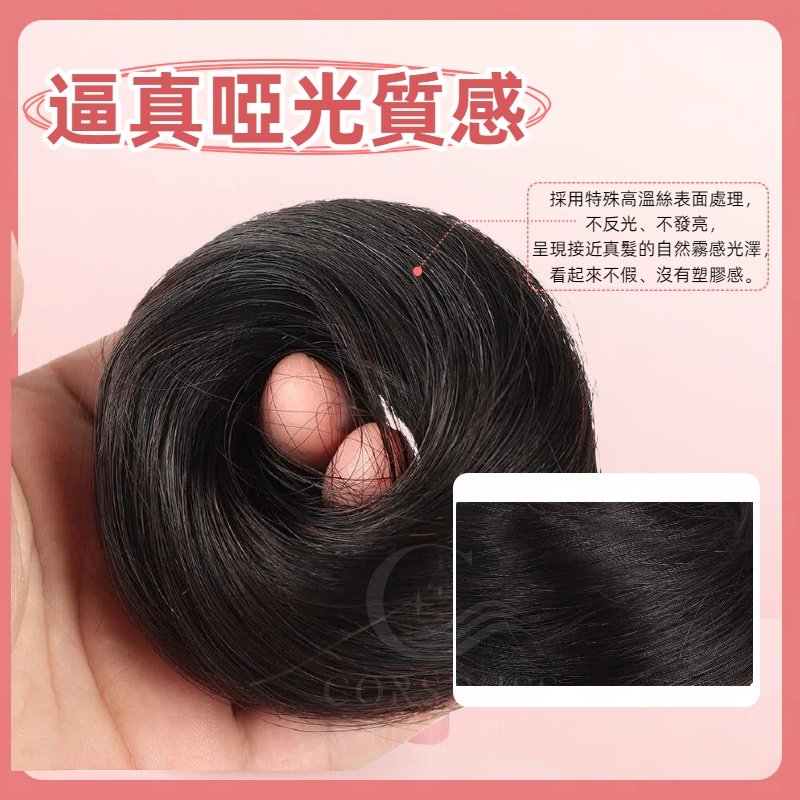 直髮丸子頭髮圈|自然不假光・日常專用丸子頭|蓬鬆自然17.2g|高彈力不變形假髮包