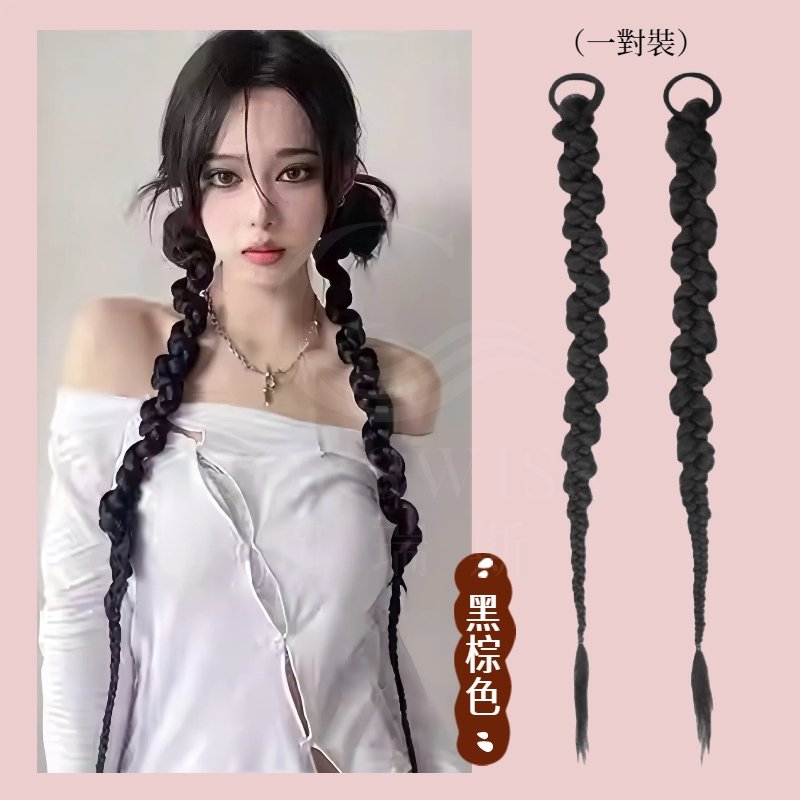 辣妹麻花扭扭辮|高仿真髮不假光.彈力髮圈3秒戴上|深棕/黑棕可選 可修剪假髮束