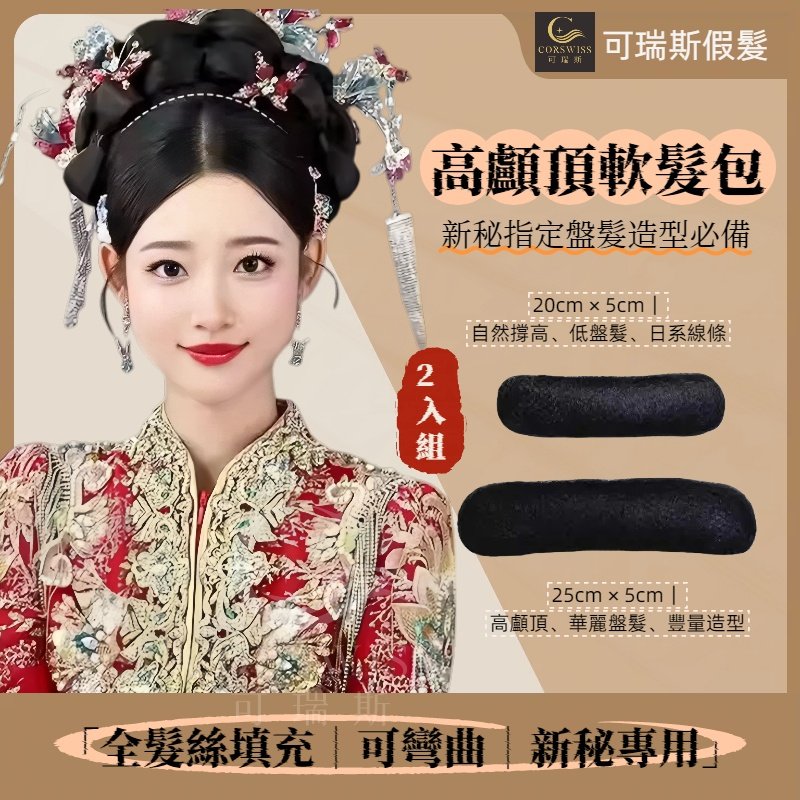 高顱頂軟髮包2 入組|全髮絲可彎曲墊髮包|新秘指定盤髮造型必備(20cm/25cm)
