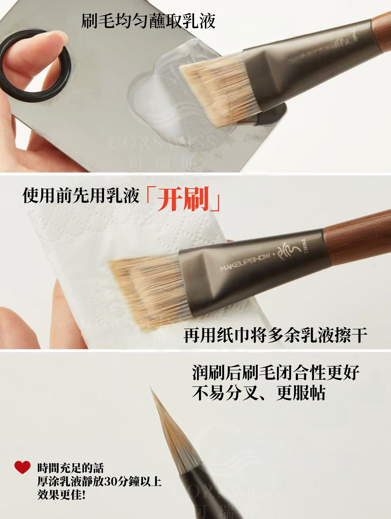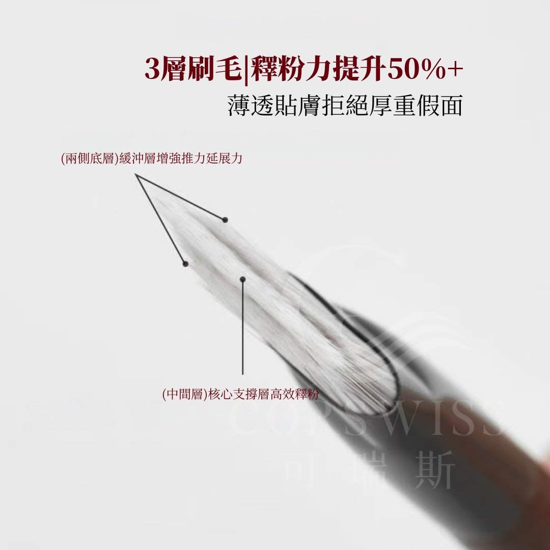 三層分工結構刷毛:抓粉力強,推勻快速,輕鬆完成無瑕底妝。