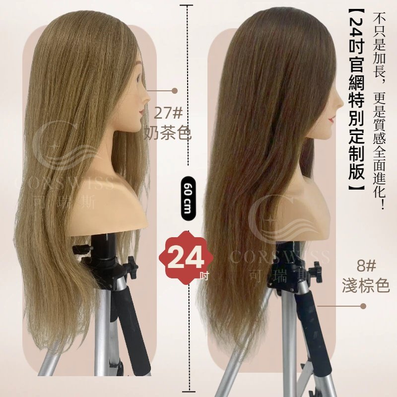 24吋全真髮造型假人頭・不掉髮・扎實髮根・穩固底座・專業認證