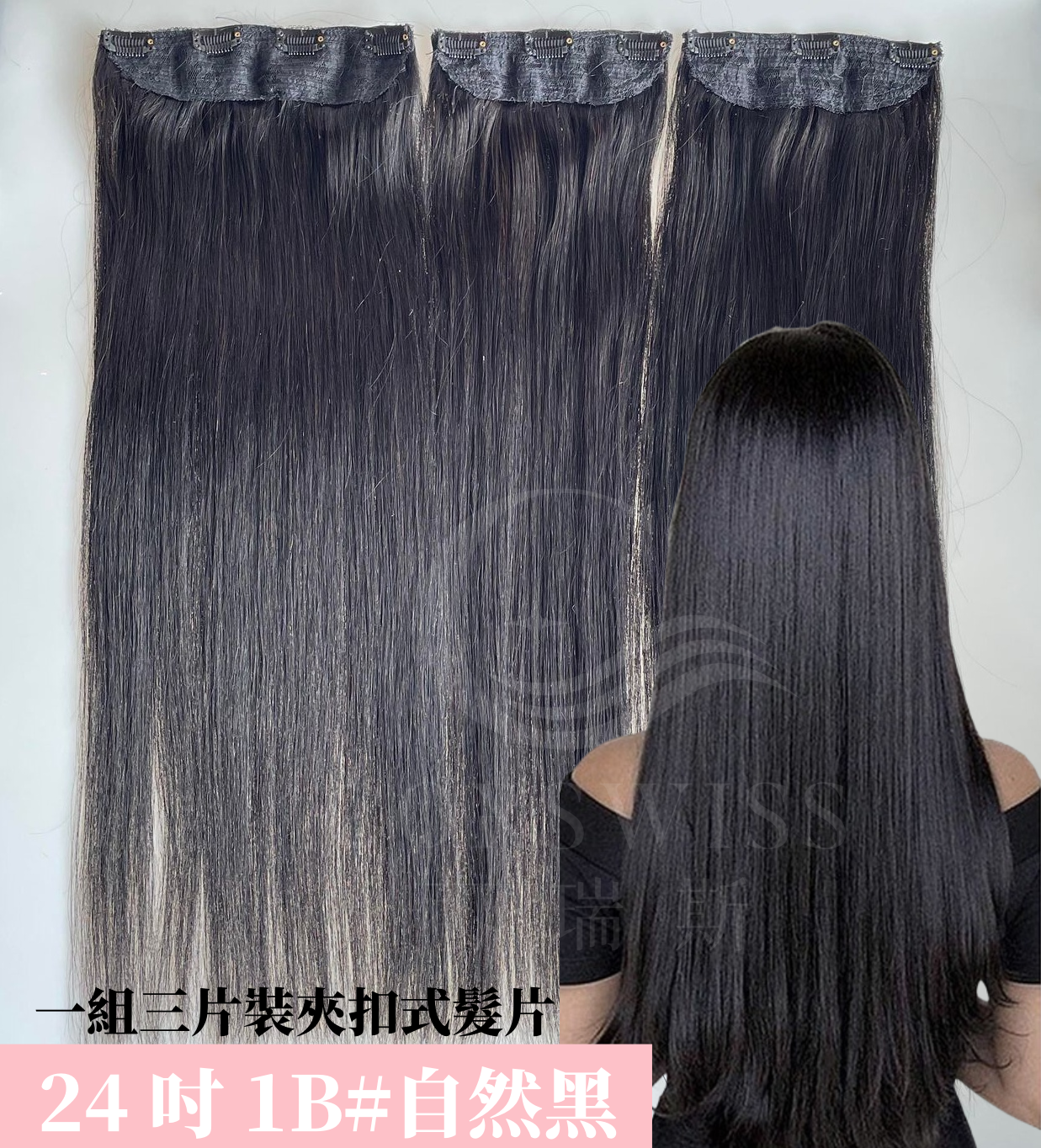 24吋1B# 真髮扣式接髮片|一組3扣・厚實不虛髮尾・實現女神級長捲髮