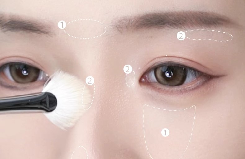 扇形邊緣的「銳利線條」可精雕鎖骨、唇峰等細部;側面轉折處則能大面積打亮額頭、下巴。更進階的用法還能沾修容粉,輕掃下顎線打造小臉效果,堪稱「立體輪廓的作弊神器」!