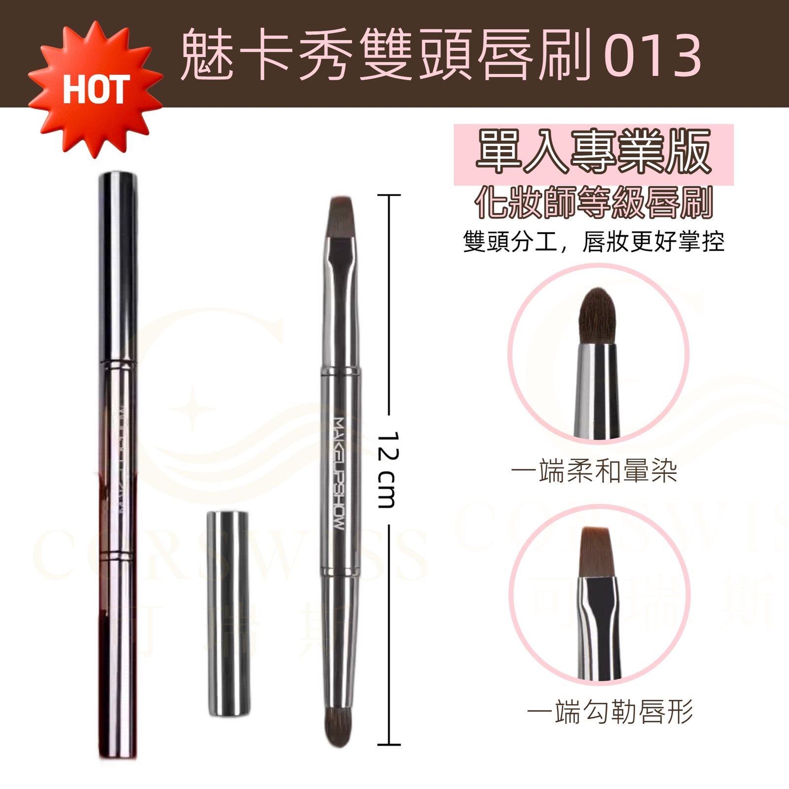 MAKEUPSHOW 魅卡秀極光幻彩雙頭唇刷 O13|纖維毛+馬毛|唇部暈染刷|雙頭口紅刷|化妝師專用便攜唇刷
