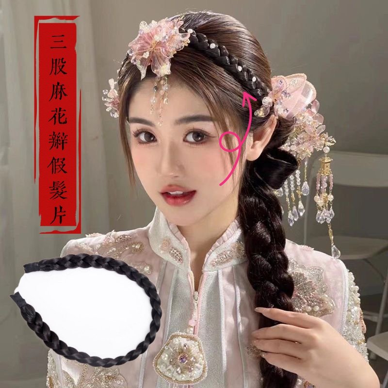 🎎 【中式婚禮點睛】:專為秀禾、龍鳳褂等傳統婚服設計,三股辮經典元素,溫婉典雅。