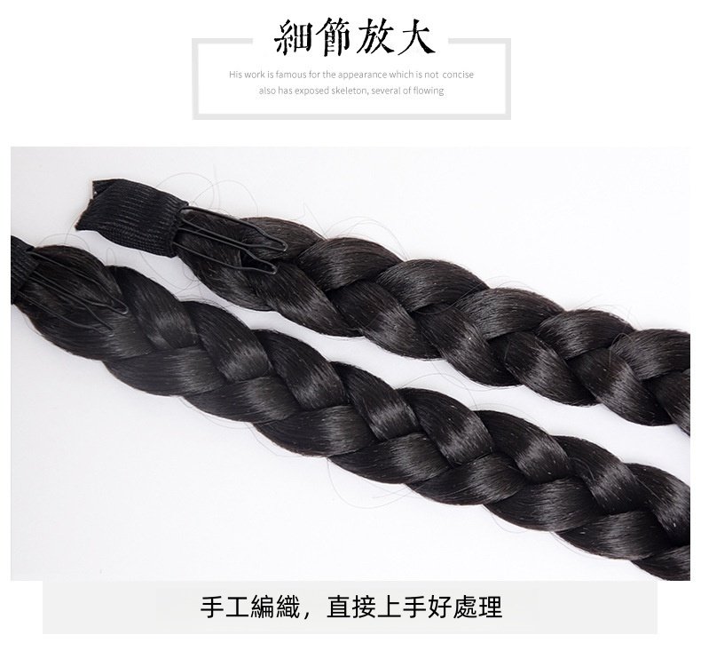 中式新娘盤髮專用 | 三股麻花辮假髮片 | 47CM啞光高溫絲 | 黑棕色/深棕色